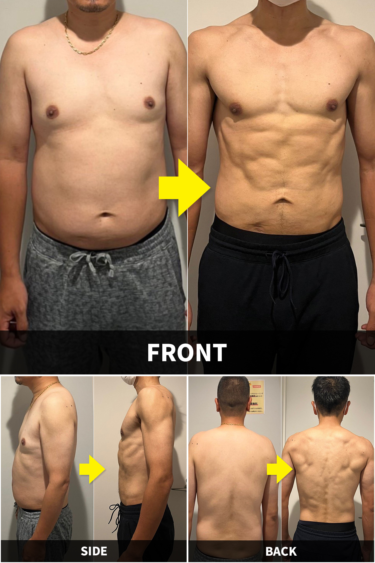 - 正しいトレーニングとその効果を最大限に高める正しいフォームを獲得できます。